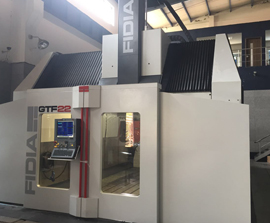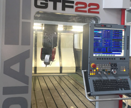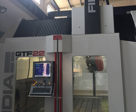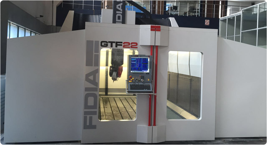 意大利FIDIA GTF22军工级五轴加工中心有A轴、C轴和XYZ五个轴,A轴和C轴与XYZ三直线轴实现联动,就可更加方便的加工出复杂的空间曲面。这样又可以把工件细分成任意角度,加工出倾斜面、倾斜孔等,复杂的工件就得以完成加工。
